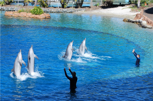 海洋世界是澳洲最大的海洋公园,乐园内游乐设施齐全,有紧张刺激的三重螺旋翻滚的云霄飞车、