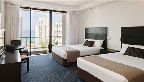 七星安排的酒店是冲浪者天堂皇冠假日酒店,酒店位于郁郁葱葱的热带花园之中,