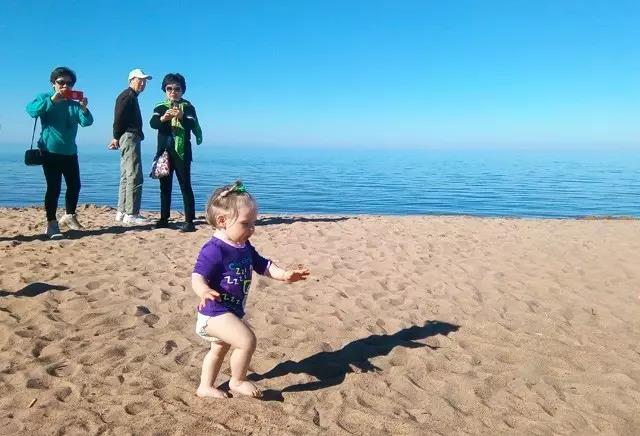 碧蓝的湖水与天空结成一线,像当地人一样在湖边散步,享受休闲时光。
