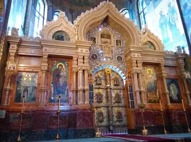 滴血大教堂上有五光十色的洋葱头顶,是俄国十六和十七世纪的典型的东正教教堂建筑风格。教堂轮廓美丽,装饰花花绿绿,据说它是国内哈尔滨的圣索菲亚教堂的原形。