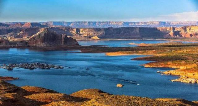 狭长的鲍威尔湖就像一条蓝色的裂缝