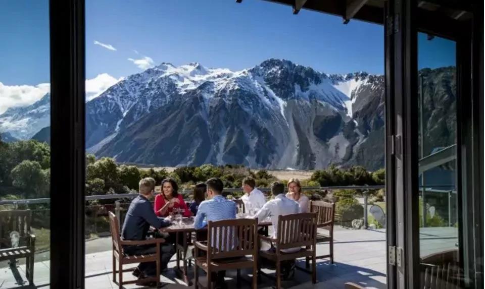 在库克山酒店午餐,透过清晰的落地玻璃窗,一边欣赏着山上皑皑白雪,一边品尝着美味佳肴。