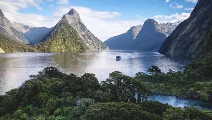在米尔福德峡湾游船,蓝天,白云,穿梭于绿如碧玉,静如明镜的湖面,品尝着精致的美味餐食,仿佛感受到时间就静止在这一刻了。