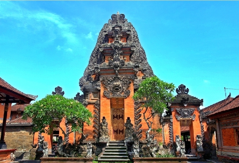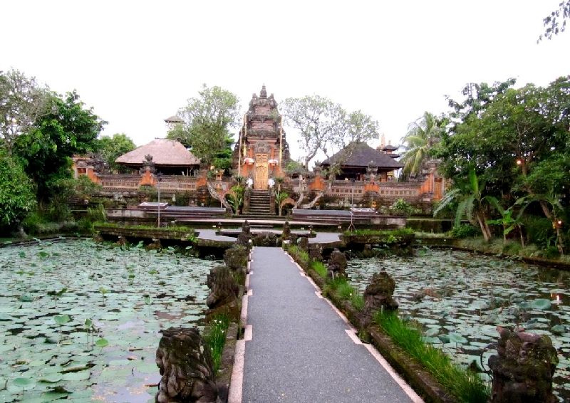 皇宫坐落在素有巴厘岛艺术重镇的乌布市里,整座宫殿气势恢宏,特别是大门,宫殿内精致细腻的手工雕刻和贵气逼人的金箔装饰,每年吸引着许多的艺术爱好者们慕名而来,