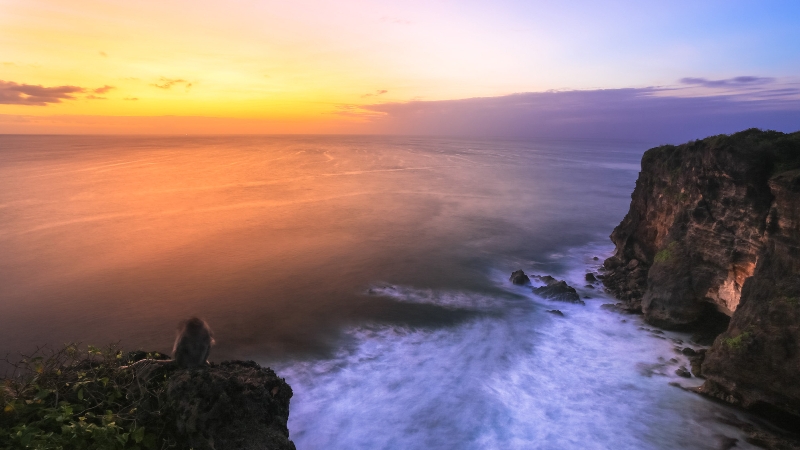 临海而矗的情人崖,坐落在巴厘岛的至南部,像是谁用巨斧在乌鲁瓦图的海上岩石上劈了一刀一样。之所以叫情人崖是因为其背后有一个动人心魄的爱情故事,故事是关于一对得不到祝福的情侣双双殉情的故事。