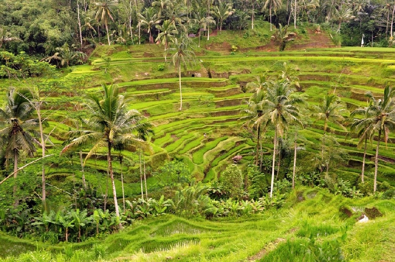 巴厘岛著名的梯田风光,在这里你会发现很多明信片和摄影作品上熟悉的场景,田间点缀的椰树和雄伟的火山背景使它在世界上无数的梯田中独树一帜,难得的是热带风光与田园景色的完美契合。