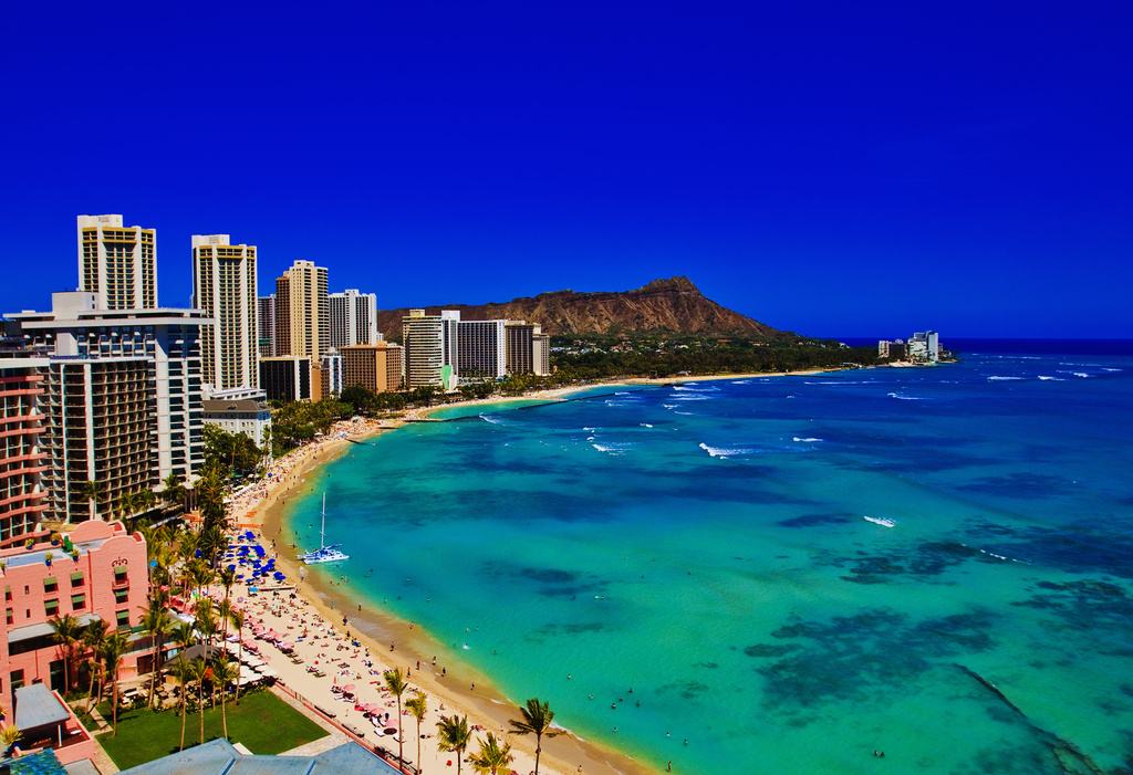 搭乘国际航班飞往浪漫之地夏威夷州首府火奴鲁鲁,入住伊利凯威基基滨海度假酒店