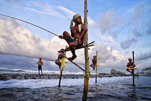 黄昏时前往参观斯里兰卡独特的“立钓”:【高跷渔夫】是斯里兰卡特有的一 种传统捕鱼方式,也可以亲自体验这种古老的传统。