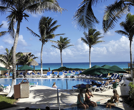 坎昆是加勒比海地区的海边城市,26 公里长的海岸线,海岸边上遍布 74 家国际大型连锁酒店,是欧美富人们旅游休闲的度假胜地之一