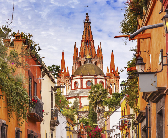 【圣米格尔】,建立在海拔 1950 米之上的圣米格尔是座典型的殖民地风格小城,同时又是墨西哥著名的艺术之城,很多画家、雕刻家、陶艺家、摄影家都是出自于此。参观圣米格尔教区教堂,这座教堂粉红色“结婚蛋糕”式的高塔非常奇特而醒目