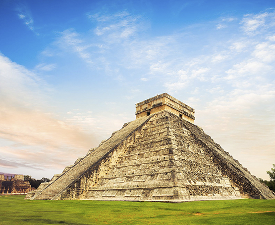 奇琴伊查是已经发掘出的最著名的玛雅文化遗址,玛雅人在这里用石头建造了数百座建筑物,已经发掘出的重要建筑有库库尔坎金字塔、勇士庙、千柱群、球戏场、天象台等。这些建筑高大雄伟,雕有精美的纹饰,位于奇琴伊察大广场中央的库库尔坎金字塔是最高大的一座建筑,它 9 层相叠高达 30 米,占地 3000 平方米,显示了古玛雅人高超的建筑艺术水平