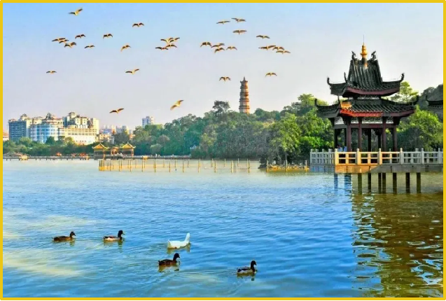 早餐后出发前往惠州(车程约2小时15分钟),参观惠州西湖国家风景名胜区,【惠州西湖】漫步苏堤上,微风吹过,波光粼粼感受西湖的秀丽。徒步湖边,微风袭脸,翠绿的湖面,清波荡漾。 午餐后车赴中海汤泉(车程约40分钟) ,入住酒店后自由享受温泉及游乐设施。"