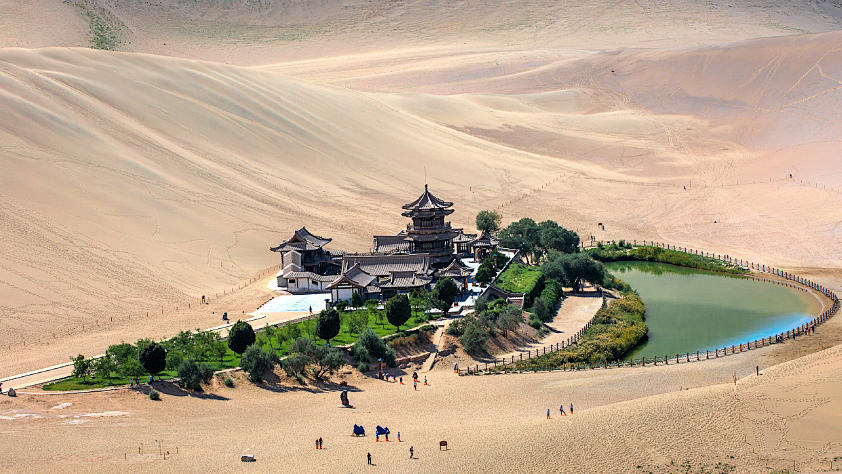 上午:早餐后出发前往鸣沙山·月牙泉, 鸣沙山,进一步、退半步的软沙踩在脚下,犹如沼泽般的沉陷十分好玩,随后参观被誉为“银山四面沙环抱,一池清水绿漪涟”的天下沙漠第一泉月牙泉。 下午:来到中国四大石窟之一莫高窟。这里是是世界上现存规模最大、内容最丰富的佛教艺术地。大家会先在数字中心观看两部电影,对莫高窟有了初步了解后再进入领略真正的洞窟奇观。 随后前往餐厅用晚餐,饭后回酒店休息。