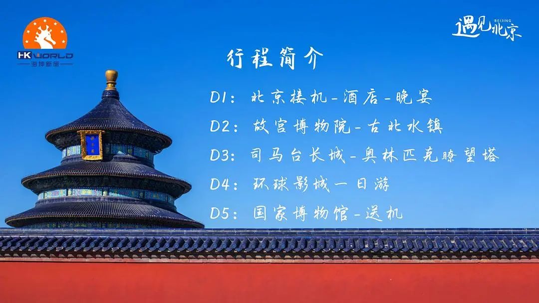 精选行程:故宫博物馆-古北水镇-司马台长城-奥林公园瞭望塔-环球影城-国家博物馆。