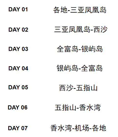 第1天 | 各地-三亚凤凰岛:各地贵宾抵达三亚,前往凤凰岛国际邮轮港办理登船手续,开启南海圆梦之旅