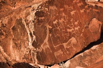 颓废方丹位于非洲国家纳米比亚西北部城市奥普沃(Opuwo)以西90公里处。被联合国教科文组织列为世界文化遗产保护地。颓废方丹据说是布须曼人于石器时代便留存下来的石壁雕刻与壁画,刻画着纳米比亚的历史及远到足迹, 有些超握六千年以上。