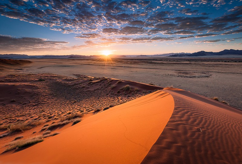 世界最古老的沙漠纳米布沙漠的心脏—苏斯黎斯,八千万年的风沙堆积,在大自然的巧手中塑造出蜿蜒柔美的曲线,没有人不醉倒在她的怀中。