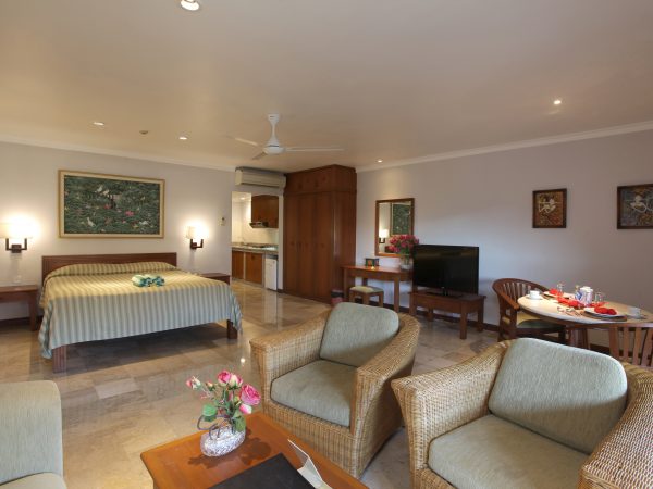 坐落在迷人的巴厘岛,半岛海滩度假村位于丹戎贝诺瓦/努沙杜阿半岛以其自身的白色沙滩和蓝色的大海,珊瑚礁附近。客房宽敞的客厅和一居室和两居室的公寓,都有空调。设施包括一个大型游泳池和水疗中心,三个餐厅,每一间客房包括体育酒吧和卫星电视。在郁郁葱葱的热带花园中设置,这个度假村是完美的和平和令人放松的假期。