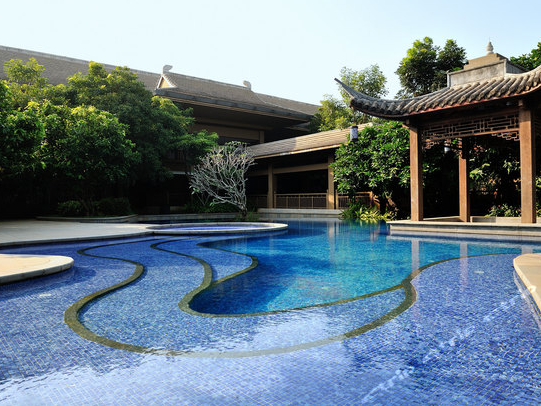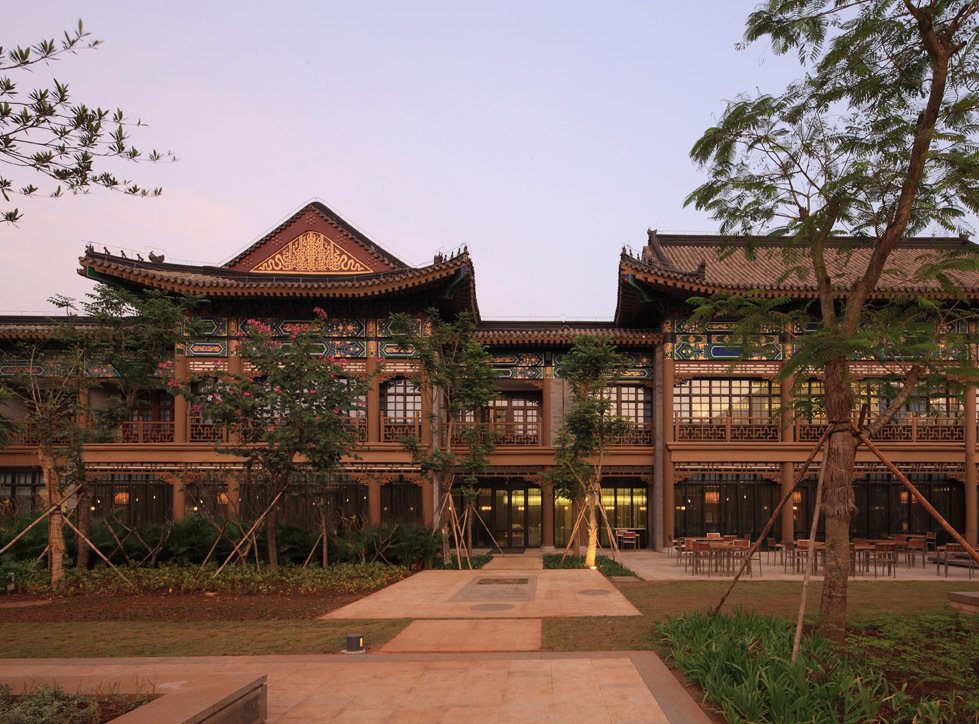 海口鸿洲埃德瑞皇家园林酒店把中国皇室建筑风格与中庭花园的园林景致融会贯通,将豪华气派的居住融入到水岸园林的休闲享受中,为住客营造了一个独特的中式皇家居住场所。