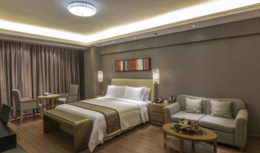 酒店餐厅装饰典雅,汇聚美食与美酒,提供自助餐及商务宴会服务,可同时容纳400人用餐。顶层VIP会所,可俯瞰全城,装修低调素雅,设有悠廊酒吧,雅致茶室、棋牌室,中西餐包房,观景露台,为您提供专属私人空间。
